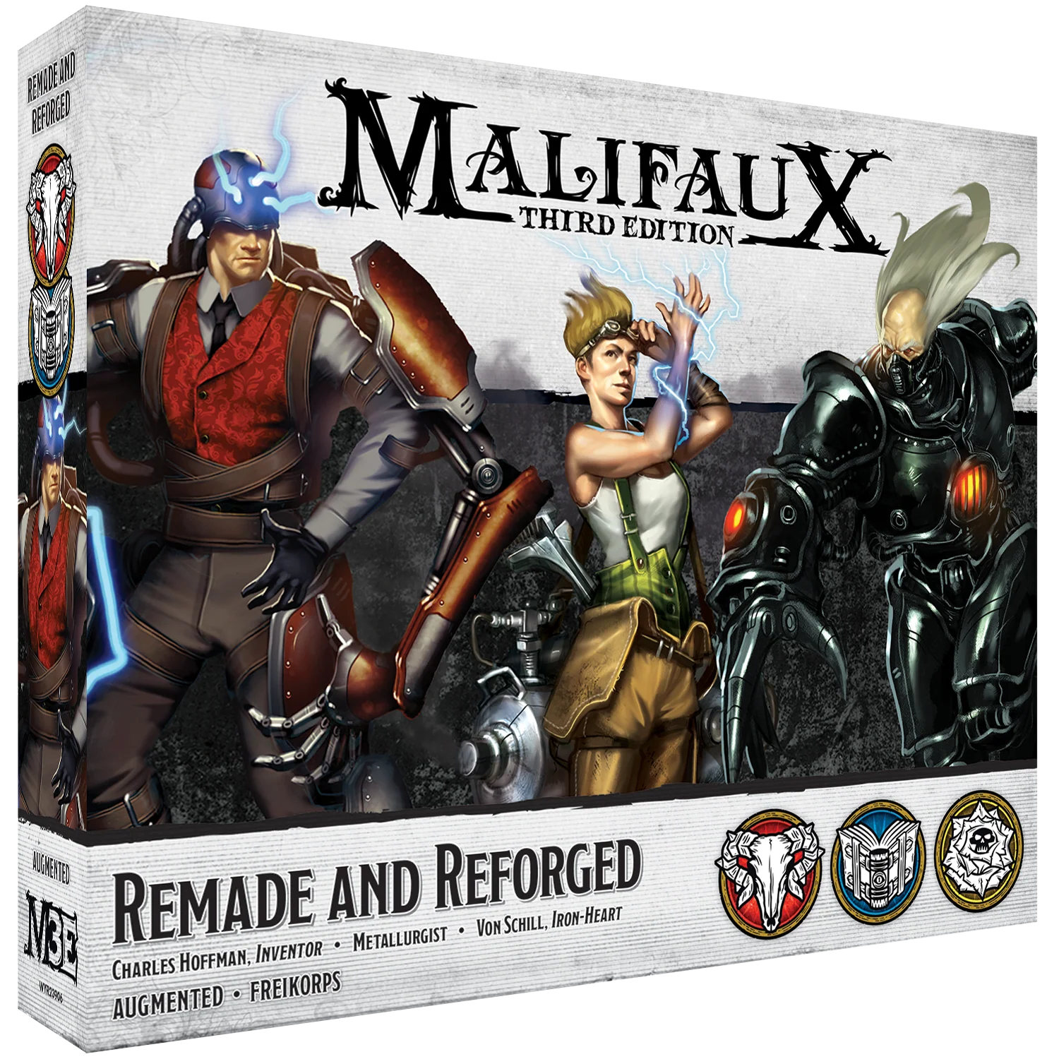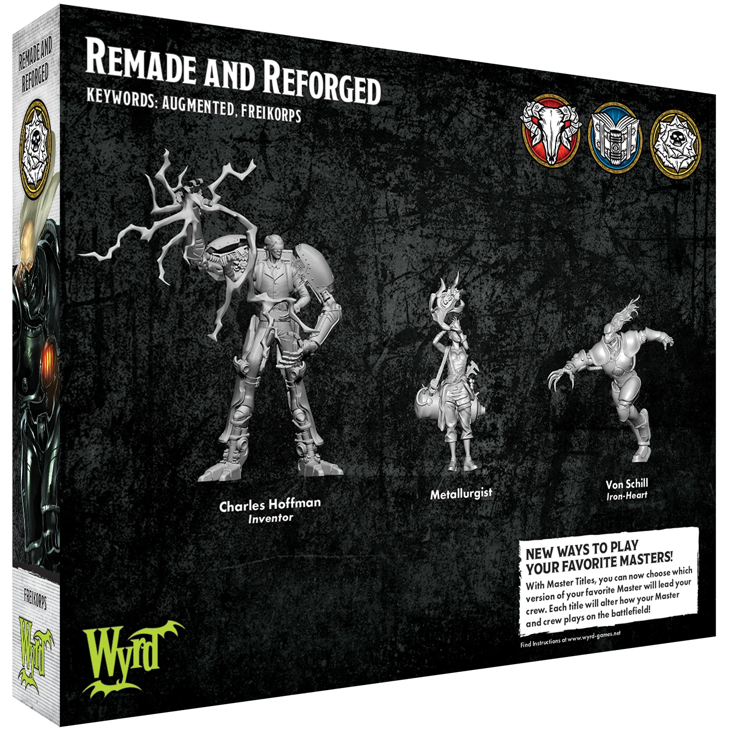 Witness the evolution of augmentation in Remade and Reforged. This Title box features Charles Hoffman as the master Inventor, taking his creations to new heights. He is joined by the Iron Heart version of Von Schill, a man who has fully merged with his Freikorps armour, and a skilled Metallurgist to keep their complex machinery in peak condition.